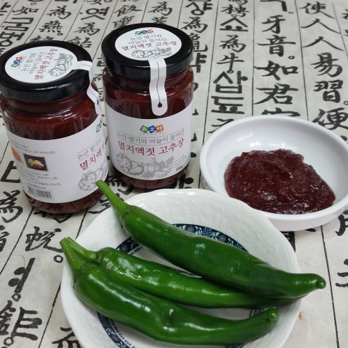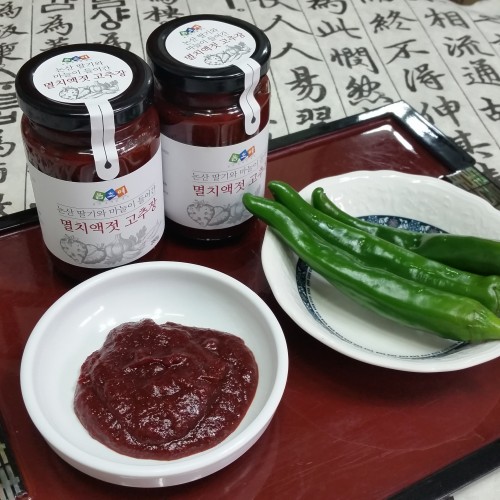 논산 딸기와 마늘 이화곡 멸치액젓으로 맛을 낸 고추장입니다.