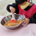 유치원 친구들이 논산딸기쌈장을 담그고 있어요.